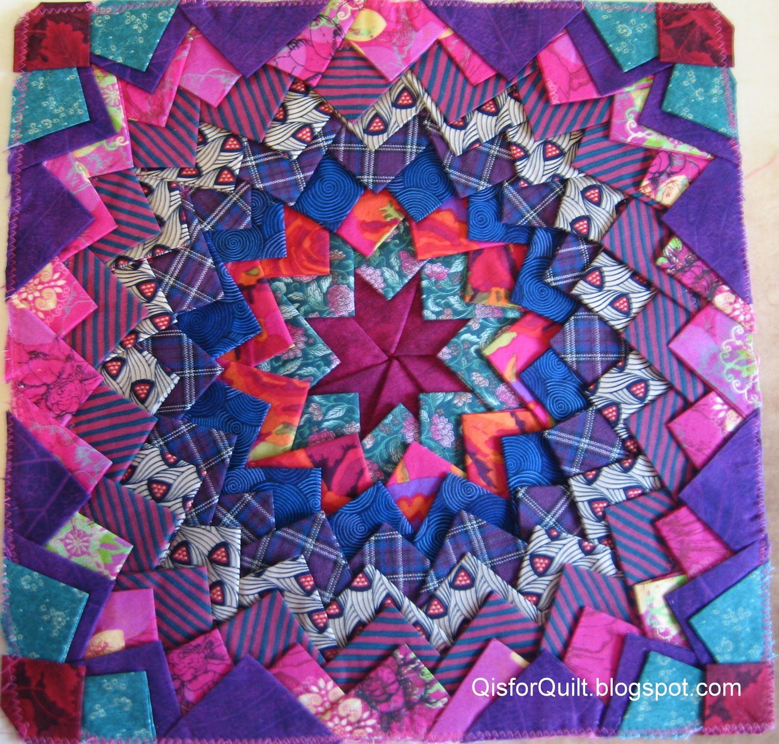 This is the Pine Burr block which is also known as the Pinecone, Target or Bullseye block. Its the state of Alabama's state quilt block. Wonder how many other states have an official state quilt block? I highly doubt that Kansas does although there are several quilt blocks with our state's name in it.
